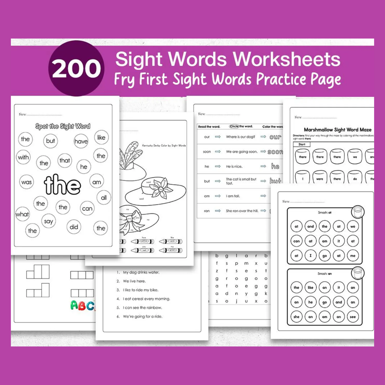 Covers Fry First 200 Sight Words – perfect for learning to read, spelling, and phonics practice for preschool, kindergarten, and grade 1.