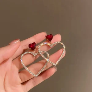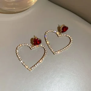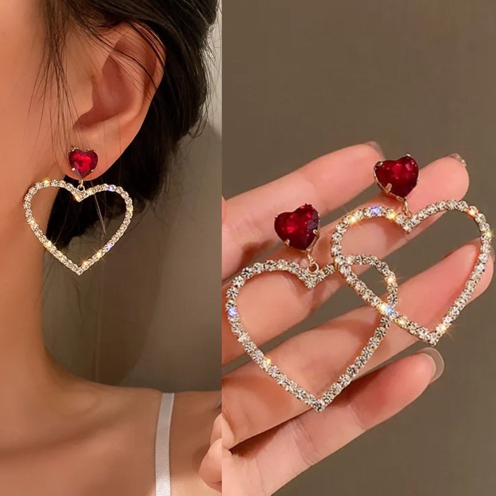 Korean Beautiful Red Stone Zirconia Heart Drop Gold Earring