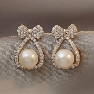 Korean Luxurious Crystal Zirconia Bow Not Stud Gold Earring