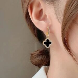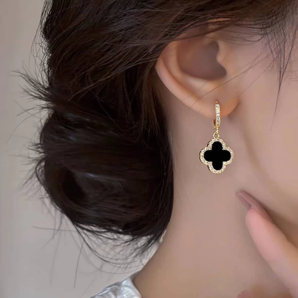 Korean Luxurious Design Zirconia Drop Black & Gold Earring
