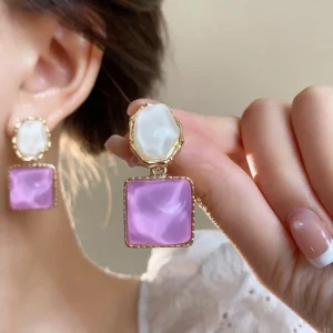 Korean Luxurious Pearl Green And White Drop Gold Earring