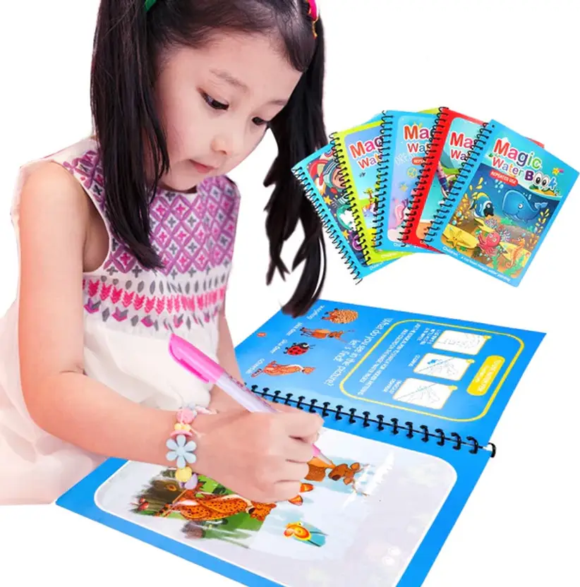 Reusable Magic Water Book for Kids Paint Colouring Drawing Pen Books Combo  (Multicolor)